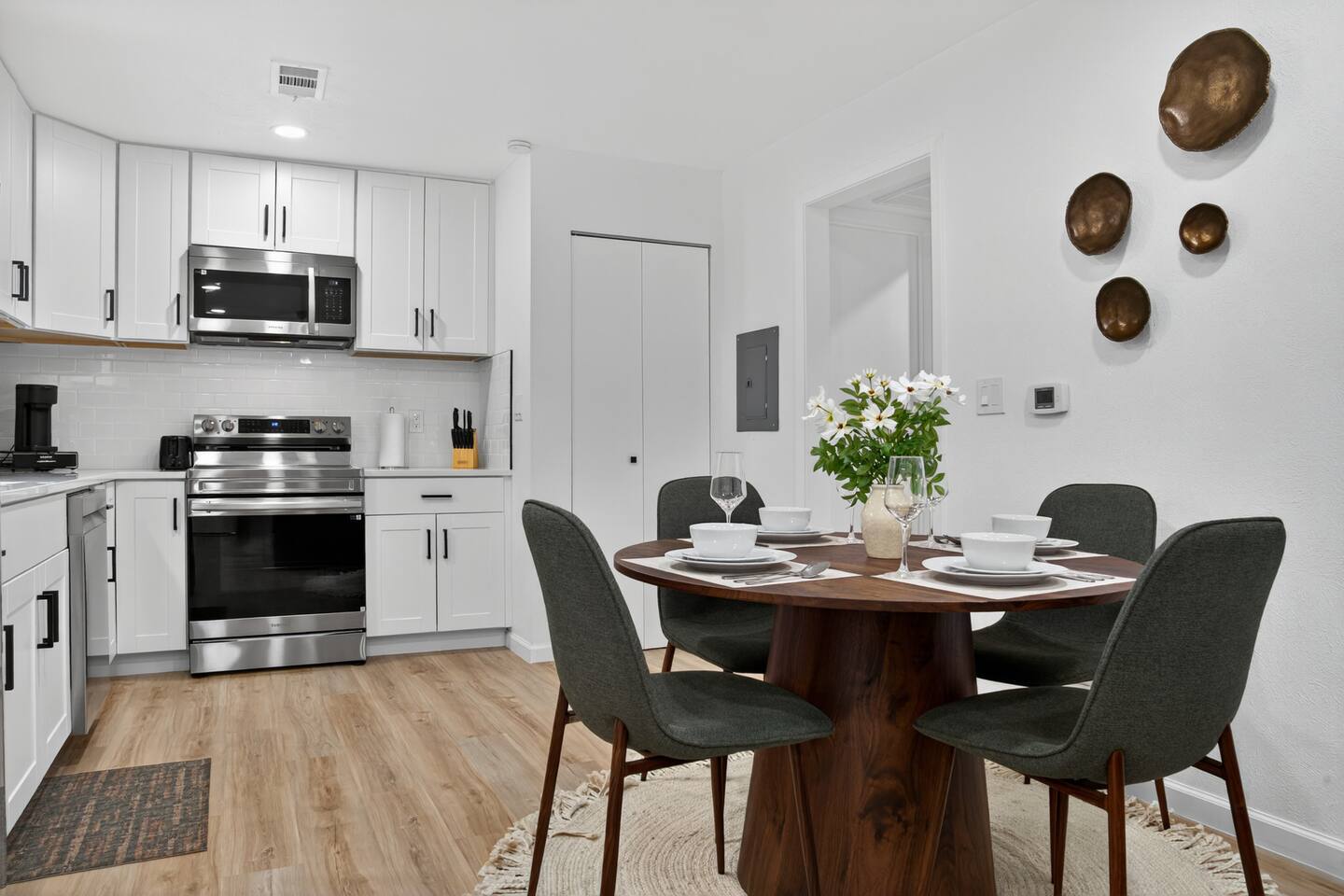 Whether you're visiting for business or leisure, this thoughtfully designed space is equipped with all the essential amenities you need for your stay to feel just like home. ★ KEY FEATURES & HIGHLIGHTS★ ✔ Perfect for groups, or professionals ✔ Fast WiFi @ 475mb/s ✔ 4K 65" HDR Smart TV ✔ In-suite Washer/Dryer ✔ Contactless Check-in ✔ Queen-Sized Bed ✔ 1 Full Bathroom ✔ All Essential Toiletries Provided ✔ Fully-Equipped Kitchen ✔ Coffee Maker + Coffee Essentials ✔ A/C & Heating ✔ EASY downtown access ★PRIME LOCATION★ ✔ 6 Minutes to Parkland Health ✔ 10 Minutes Drive to AT&T Discovery District ✔ 11 minutes Drive to Dallas Downtown ✔ 12 minutes to Dallas Zoo Farali Homes Difference ✔ No hidden fees ✔ Absolutely NO Checkout Chores ✔ 24/7 guest support ✔ Work-friendly spaces ✔ Local recommendations ✔ Premium quality linens and towels ✔ Comfortable bedding ✔ Eco-friendly products ✔ Professional grade pre-cleaning As you step inside, a welcoming glow greets you. The combined living and dining area is beautifully lit, with modern furniture creating a stylish and comfortable ambiance. This thoughtfully designed space promises to exceed your expectations and make you feel right at home.