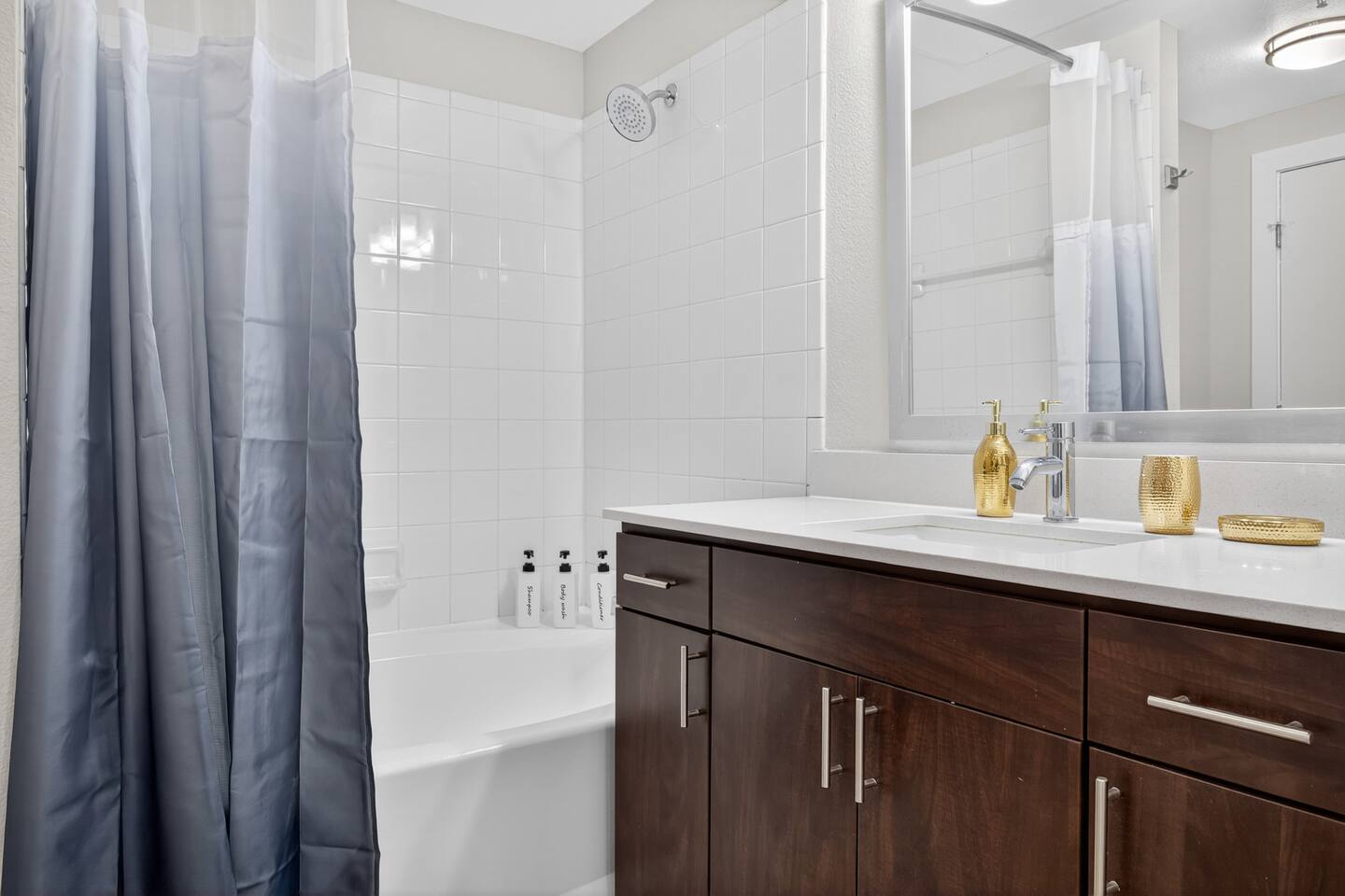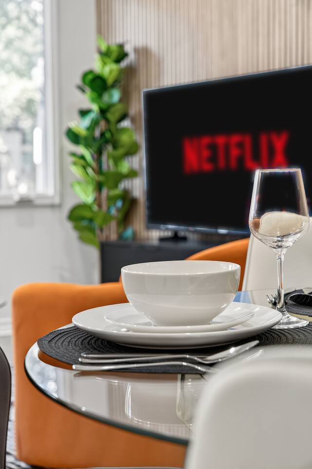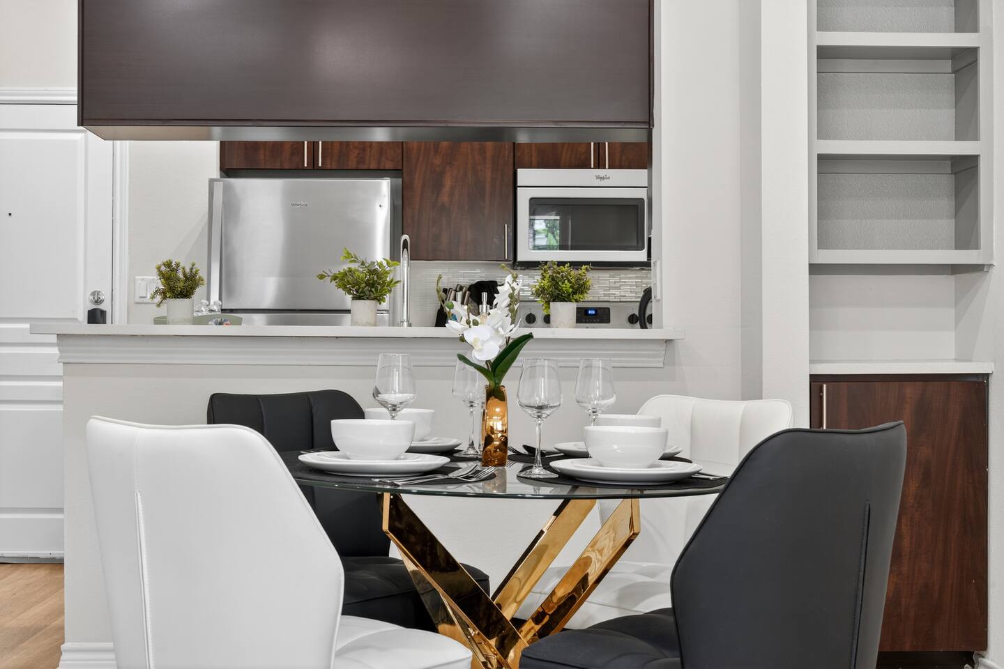 As you step inside, a welcoming glow greets you. The combined living and dining area is beautifully lit, with modern furniture creating a stylish and comfortable ambiance. This thoughtfully designed space promises to exceed your expectations and make you feel right at home. Guest access ✔ Free High-speed WiFi: 1Gbps upload/download ✔ Self-check-in and check out via smart lock. ✔ Instant communication and friendly support ✔ Convenient access to major roads and highways. ✔ Centralized AC and Heating ✔ Kitchenware you can use to cook your favorite meals **Fitness Center: 24 Hours • Pool: 10:00 AM – 10:00 PM